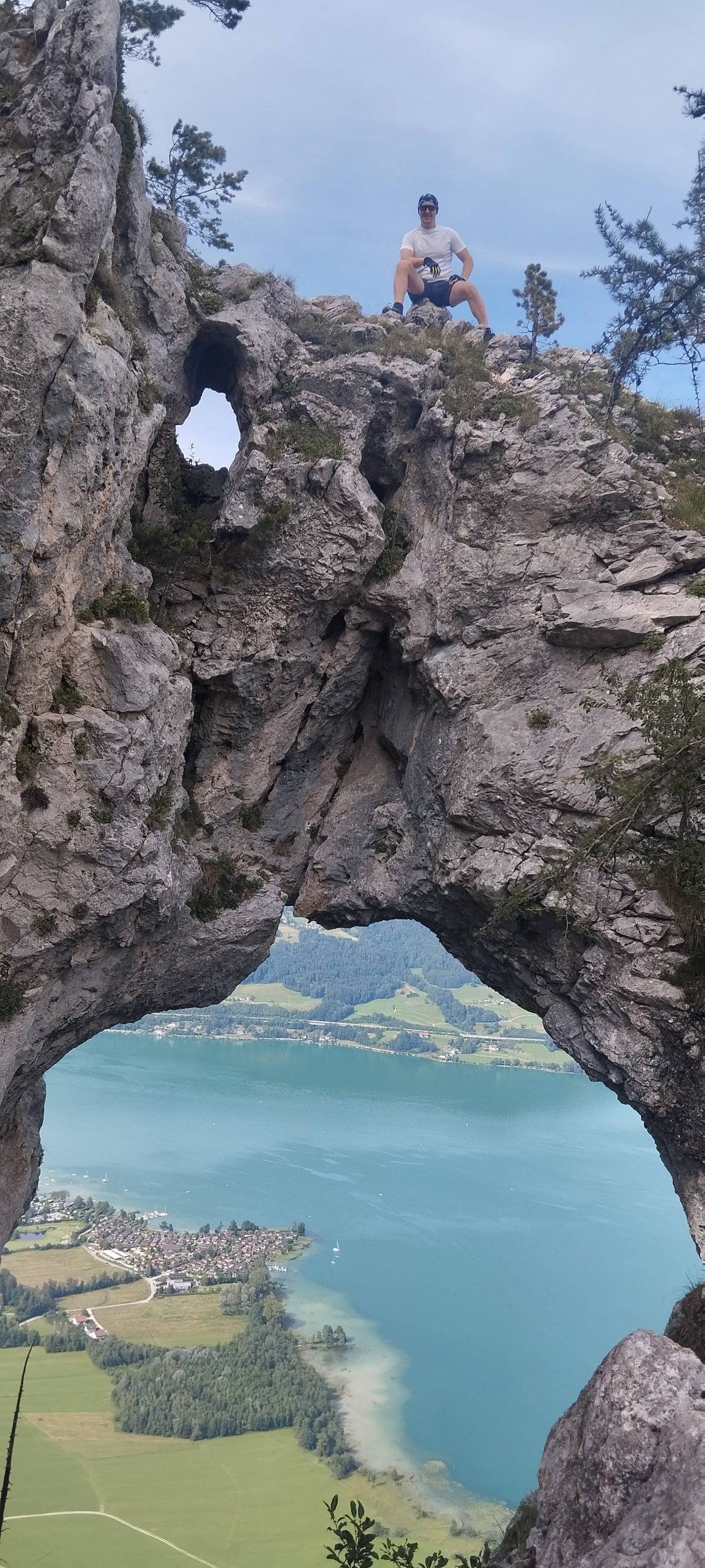 Und dann: der Gipfel. Du hast es geschafft! Vor dir breitet sich die ganze Pracht der österreichischen Alpen aus. Die Welt wirkt grenzenlos, und dieses Gefühl der Freiheit ist unbezahlbar. Doch das Highlight erwartet dich noch: das Loch im Felsen, das du vom Parkplatz aus kaum erkennen konntest. Jetzt stehst du direkt davor, siehst hindurch, und die Dimensionen überwältigen dich. Es ist riesig, gewaltig – und der perfekte Beweis dafür, dass es sich gelohnt hat.